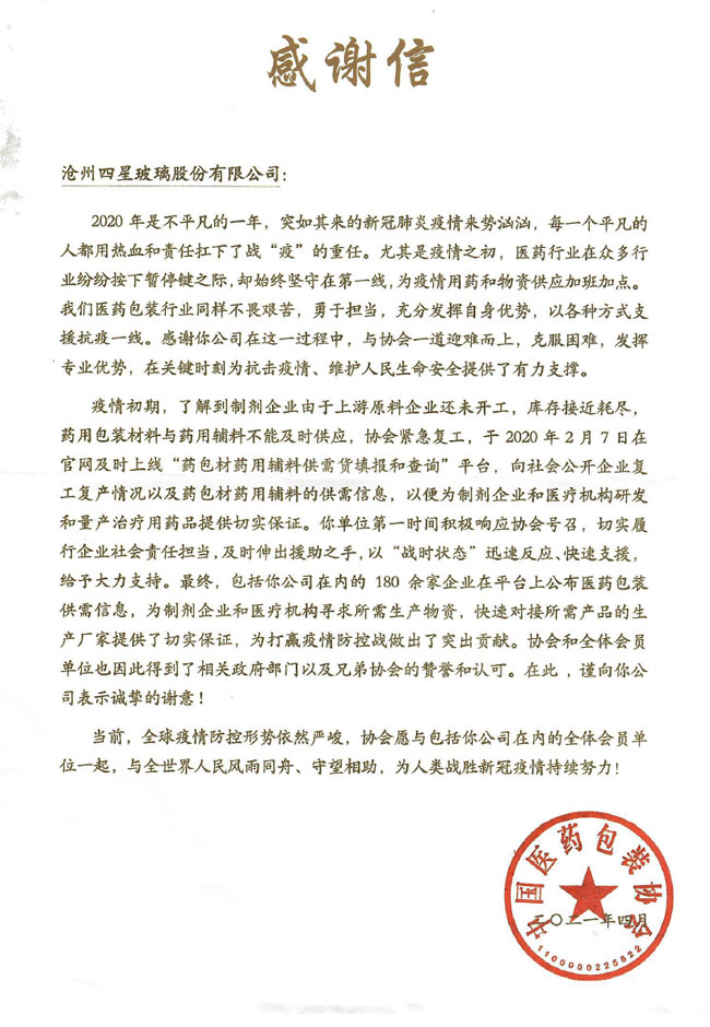 抗擊疫情感謝信-中國醫藥包裝協會